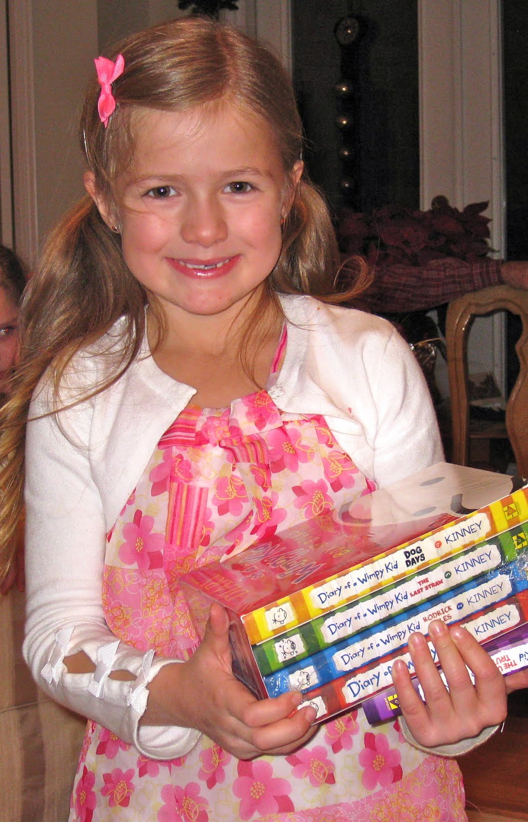 What a great Christmas we had. Here Erin was pretty happy to receive the "Diary of a Wimpy Kid" Book set from Grandma Bailey.